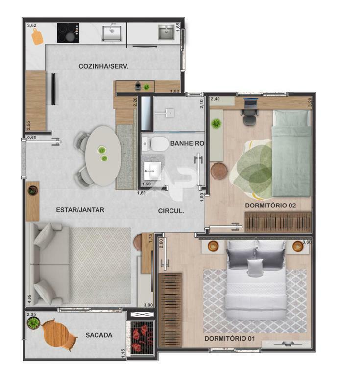 • Área Total Privativa:49,26 m²